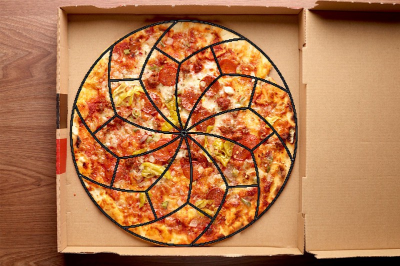 Come potete vedere, tagliando la pizza in questo modo, avrete a disposizione ancora più fette. Utilizzando questo metodo non ci sono limiti, a parte la dimensione della pizza. E poi, questi mosaici sono anche belli da vedere.